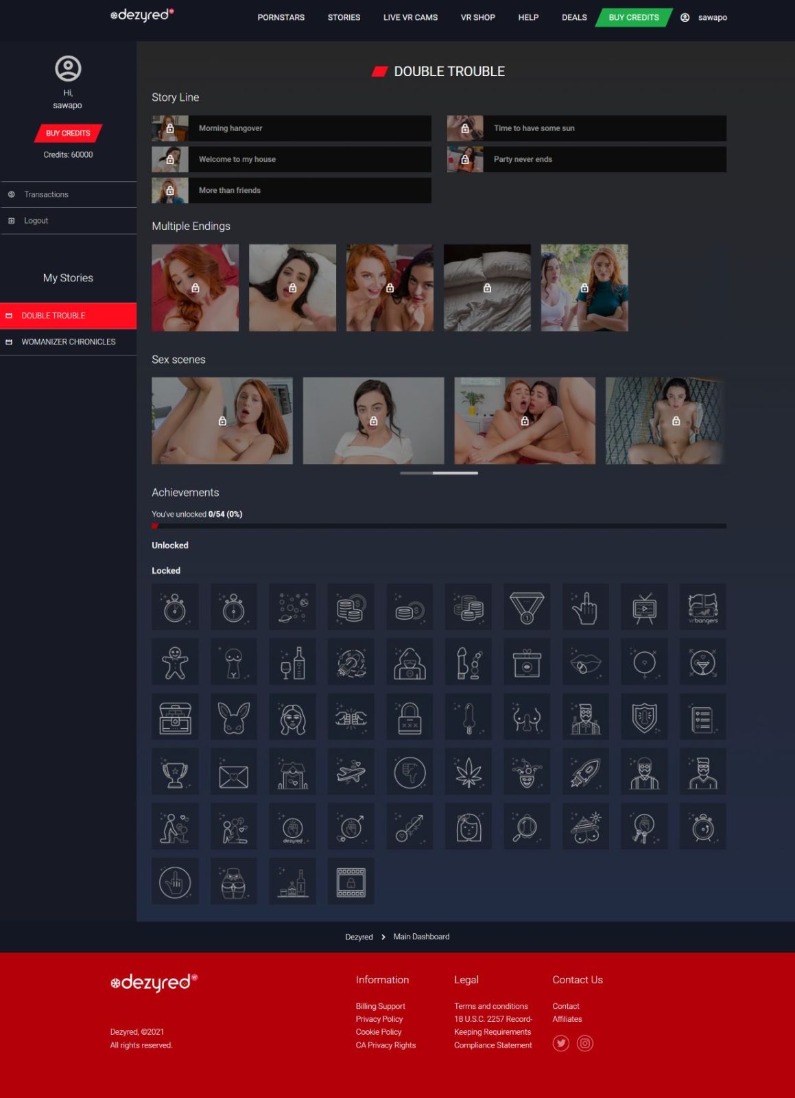 Dezyred is an interactive VR adult game platform. The 144 scenarios in its catalog are not traditional VR scenes — they're branching-choice experiences where you select options at decision points, and the scenario plays out differently based on your choices. Think choose-your-own-adventure, in 8K VR, with actual performers.