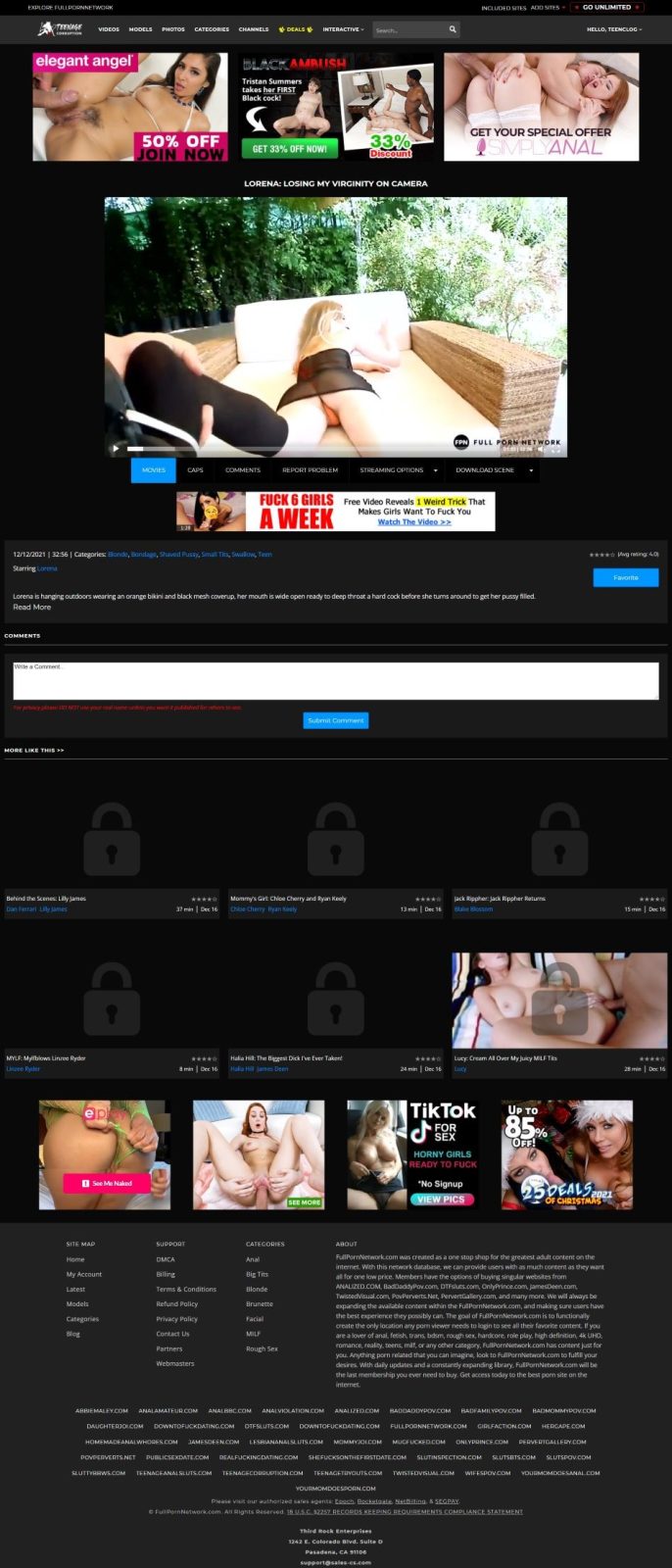 The POV angles and Teen focus hold up well. Scenes average 30 minutes, which puts Teenage Corruption above the typical clip-site standard. The Anal and Hardcore categories are both stocked, and I didn't spot any obvious content recycling from other FPN properties. The weekly update cadence was active during my test period.